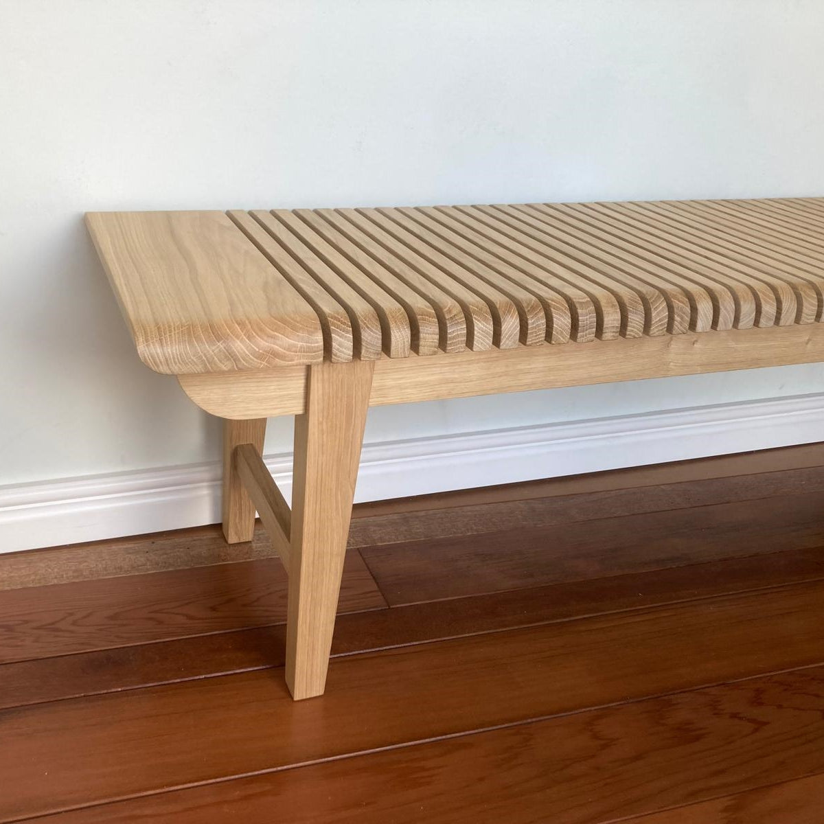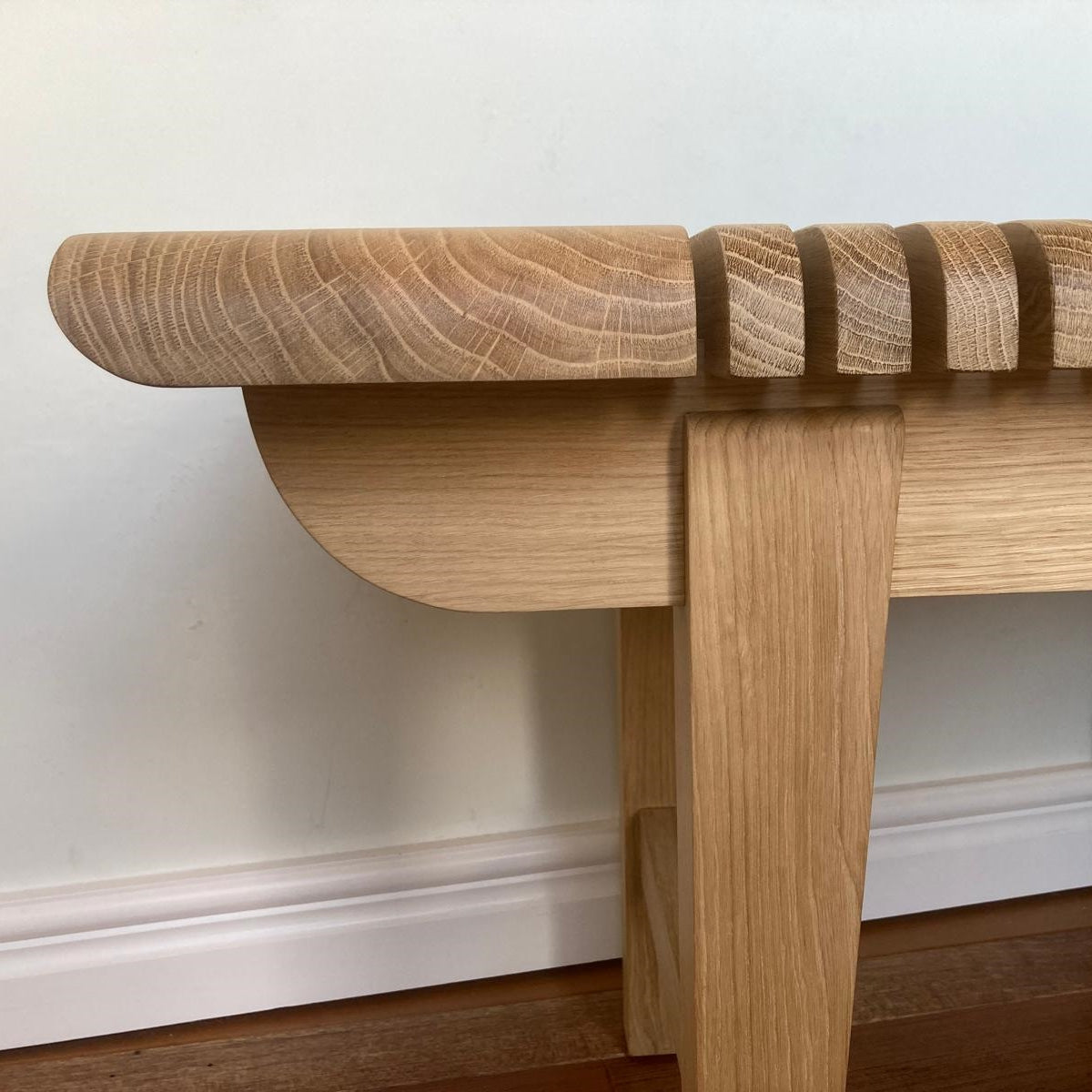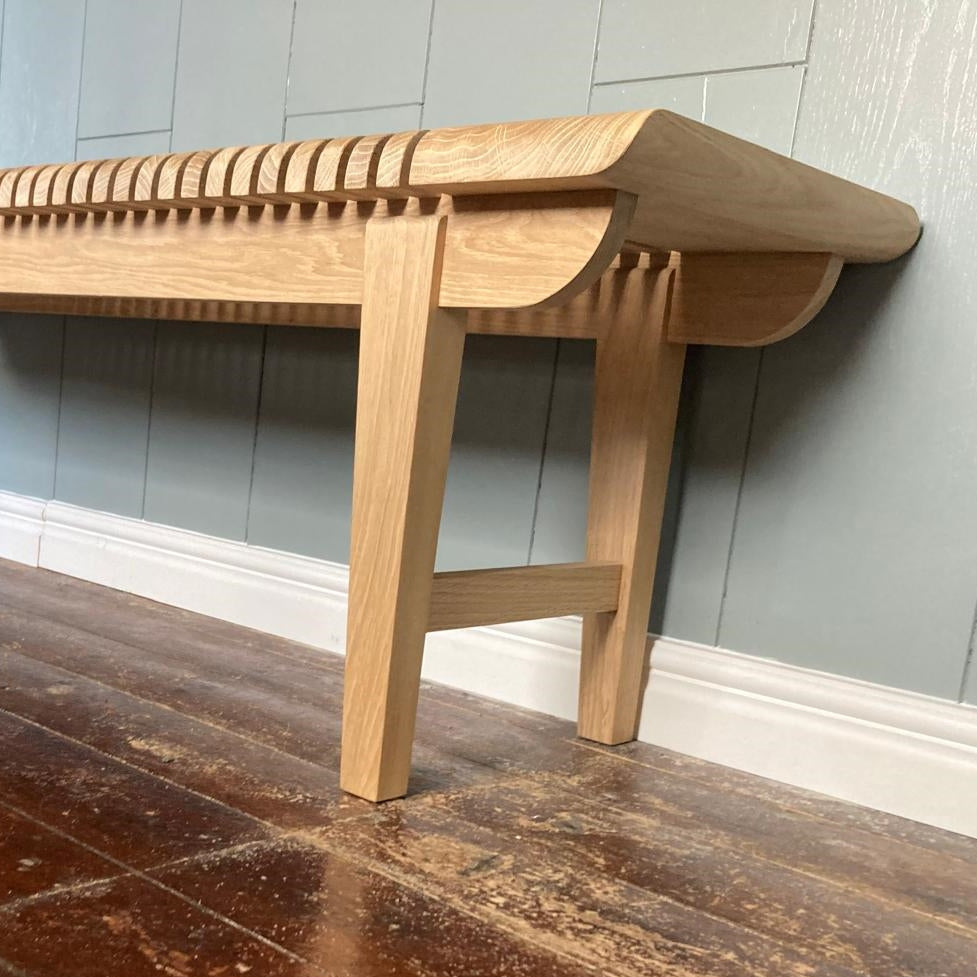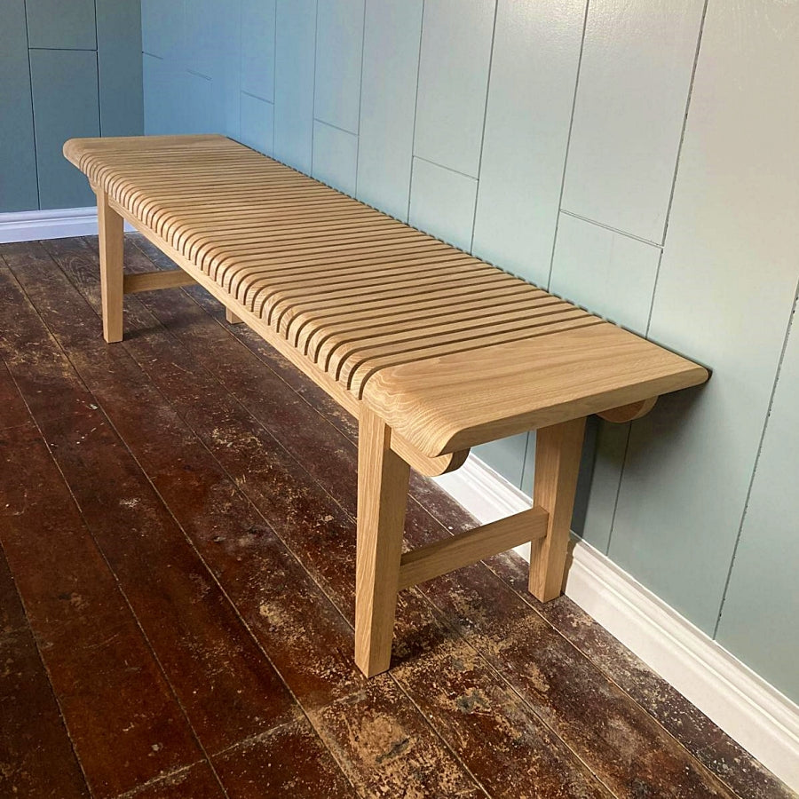 Bænken bach er fremstillet af 55 individuelle dele, alle lavet af massivt egetræ. Resultatet er både massivt og transparent: et komfortabelt sæde, der tiltrækker opmærksomhed med sit design. De afrundede ender ved overgangen til det strengt formelle stel er stildefinerende elementer. Træets fine årer kombineret med de luftige lameller skaber et smukt og unikt udseende mønster på sædet. Uanset om det er i entréen, ved spisebordet eller i stuen, forbedrer bænken bach ethvert rum.