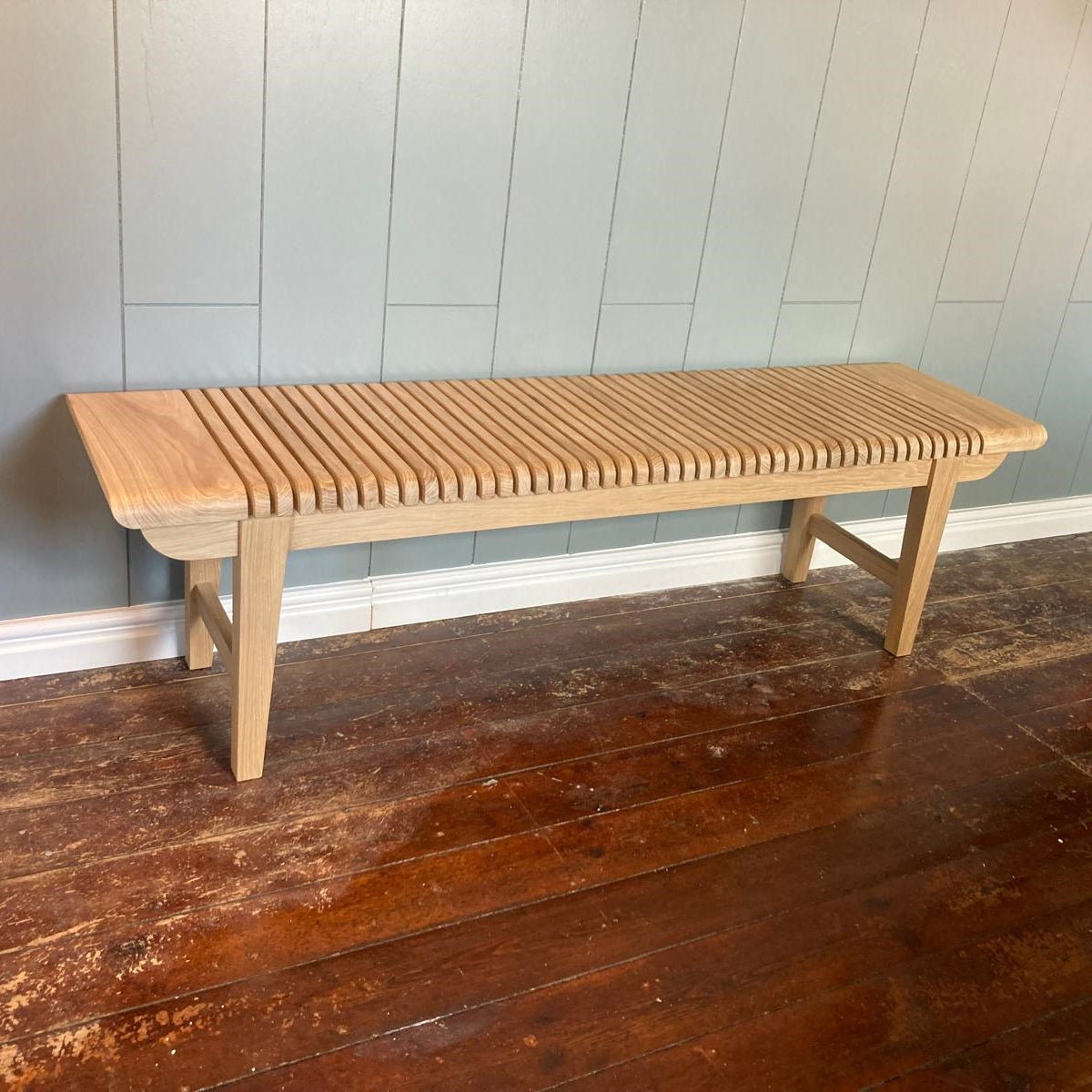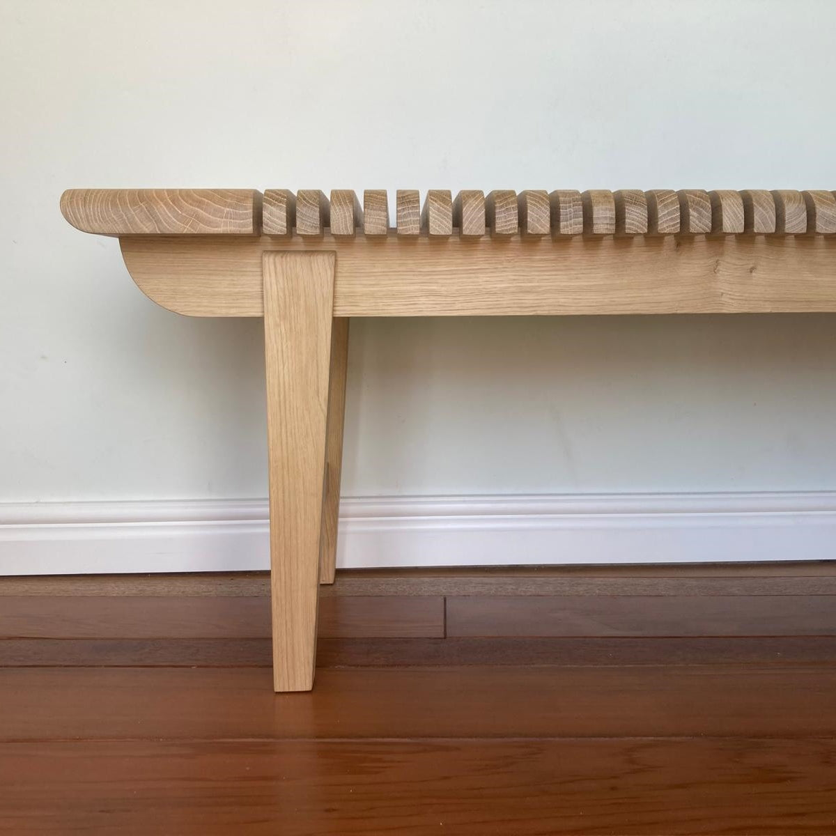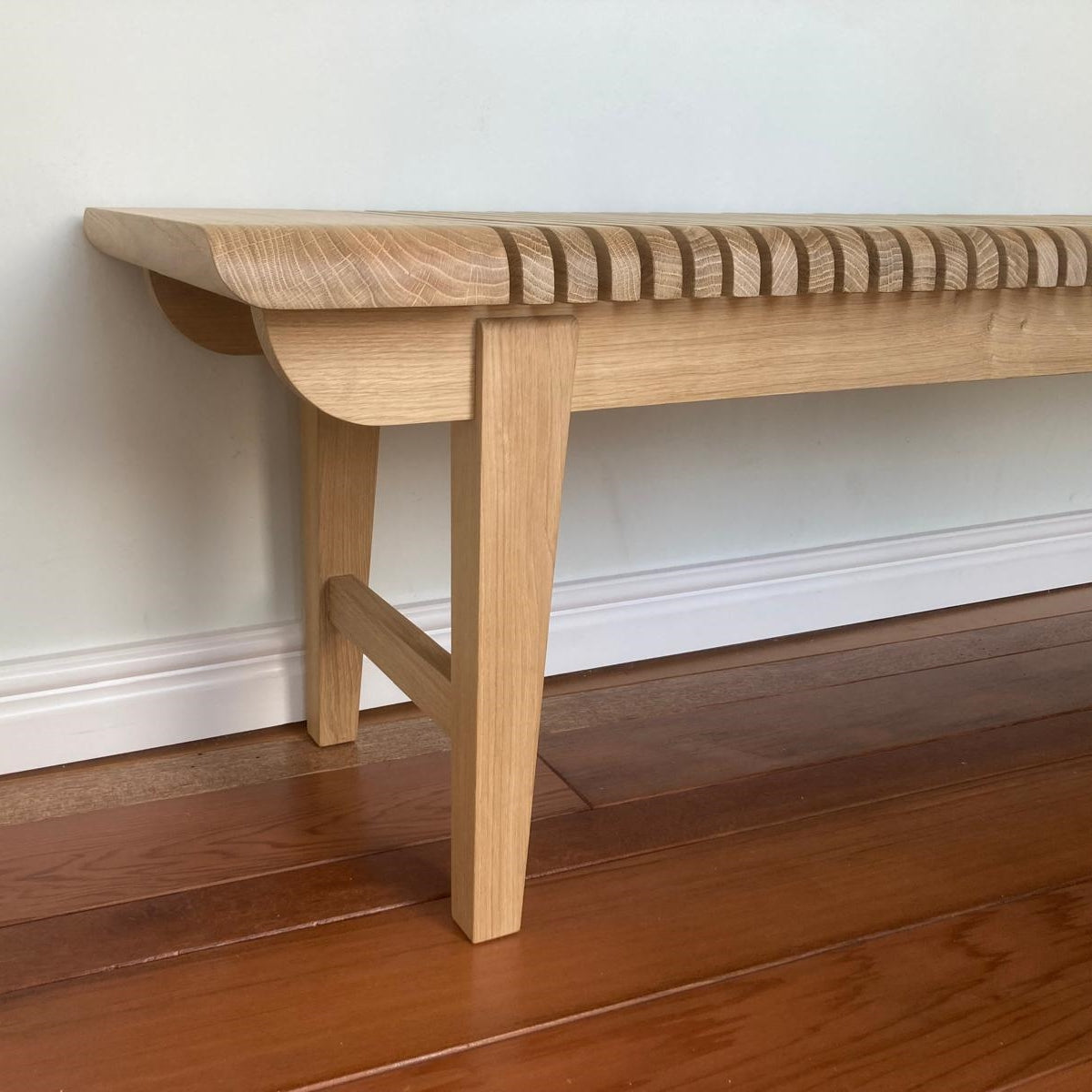 Bænken bach er fremstillet af 55 individuelle dele, alle lavet af massivt egetræ. Resultatet er både massivt og transparent: et komfortabelt sæde, der tiltrækker opmærksomhed med sit design. De afrundede ender ved overgangen til det strengt formelle stel er stildefinerende elementer. Træets fine årer kombineret med de luftige lameller skaber et smukt og unikt udseende mønster på sædet. Uanset om det er i entréen, ved spisebordet eller i stuen, forbedrer bænken bach ethvert rum.