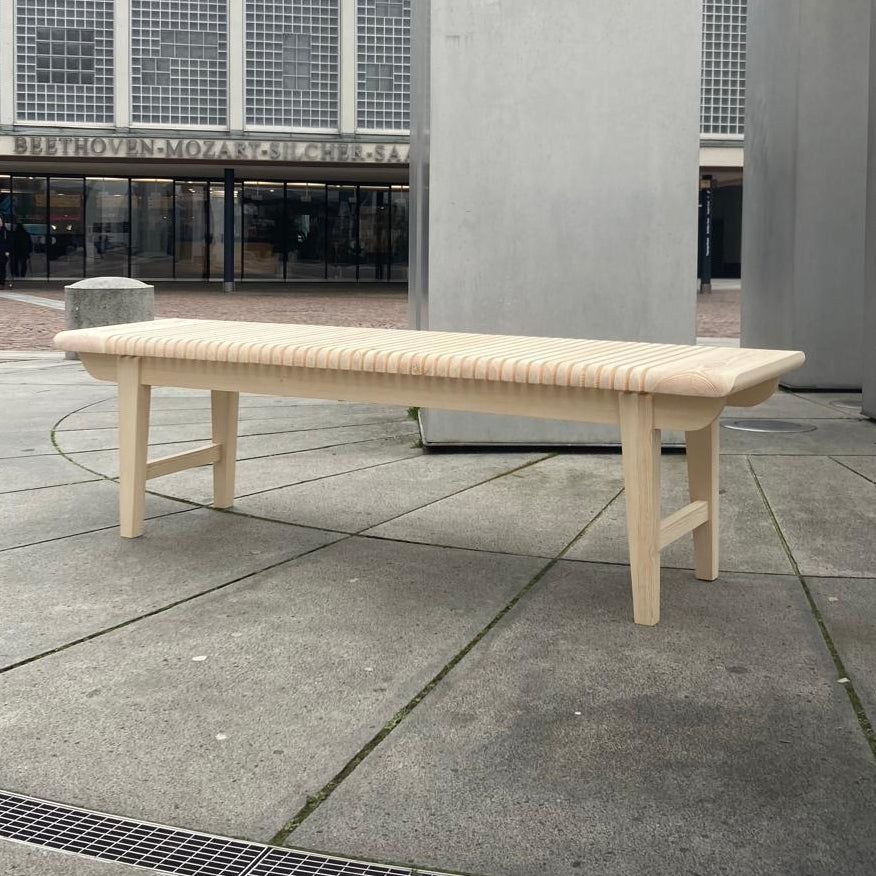 Bænken bach er fremstillet af 55 individuelle dele, alle lavet af massivt egetræ eller nordisk fyr. Resultatet er både massivt og transparent: et komfortabelt sæde, der tiltrækker opmærksomhed med sit design. De afrundede ender ved overgangen til det strengt formelle stel er stildefinerende elementer. Træets fine årer kombineret med de luftige lameller skaber et smukt og unikt udseende mønster på sædet. Uanset om det er i entréen, ved spisebordet eller i stuen, forbedrer bænken bach ethvert rum.