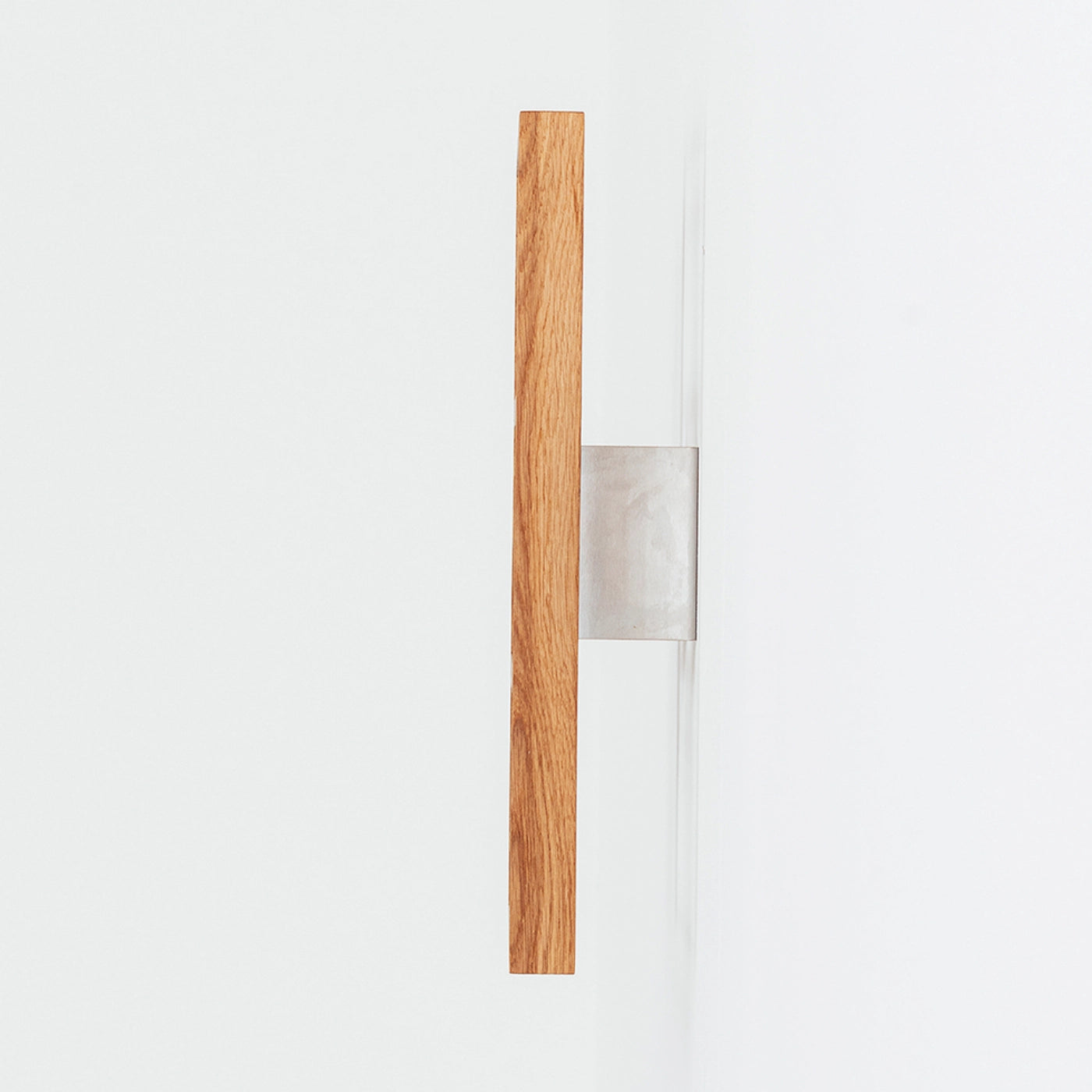 Materiale : egetræ eller valnøddetræ, olieret og rustfrit stål