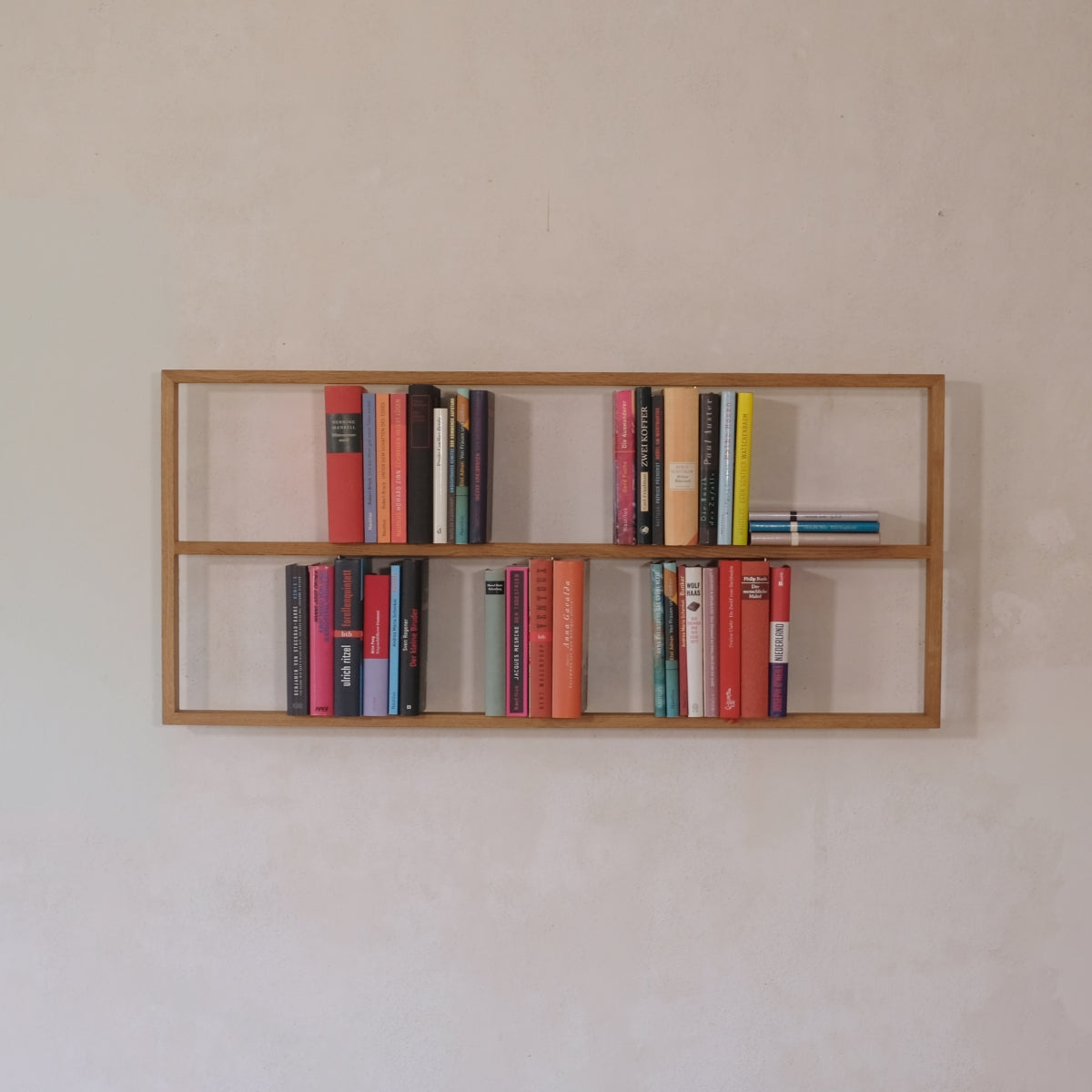 Das Regal biete Platz für Hardcover, kann aber zusätzlich auch mit Taschenbüchern bestückt werden.
